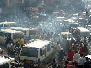 I have a theory about why the traffic in Kampala can scare the heck out of people from countries that have a structure (rules of the road) for travel. First of all ... it's not about staying in your lane, honoring other drivers, or right of way.  It's all about space.  Yes ... SPACE.  There is so little space available that whoever gets to any open space first owns it.  So, the race is on!  You against all other drivers!  You have to get there first.